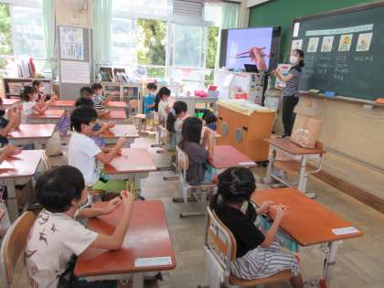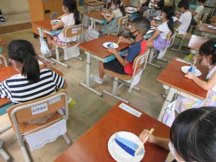 今日の学級活動の時間は,栄養教諭の筏先生に来ていただいて,「おはしのつかいかた」についてお話を聞きました。お箸の正しい持ち方を確かめた後は,お魚の食べ方の練習をしました。お箸を上手に動かして,お魚に切り目を入れて,分けたり,つまんだりしました。実際にお魚が出た時,今日の学習したことを思い出して食べることができるようにしていきたいです。