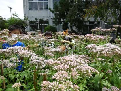総合的な学習で育てているフジバカマ。毎日,水やりをしています。その当番が,水やり後に教室へ入るやいなや,
