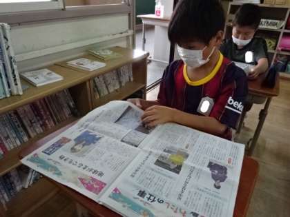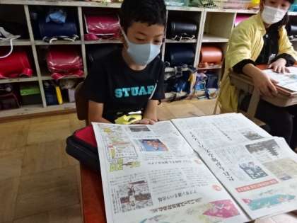 毎週火曜日は,新聞を読んでいます。今週末は,全校での「新聞ウイーク」です。そこで,記事を選んで感想を書き,それを交流します。
