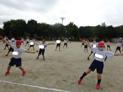 竹の里ミニスポーツ会で,4年生は団体演技「よっちょれ」を踊ります。この踊りは,鳴子を持って踊るのが,特徴です。
