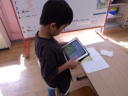 今まで,子どもたちは,場面ごとに「自分の問い」を作り,ペープサートを通じて,問いの解決をしてきました。さらに,今回はカメラの役も追加して,動画にとって活動のふりかえりしてきましたので,子どもたちは一人一人,物語の世界に入り込むことができました!