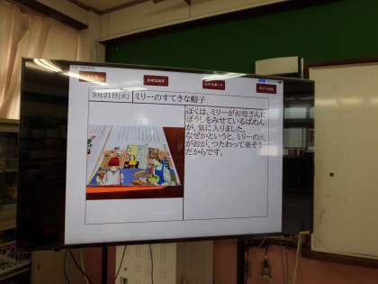 あおぞら学級の国語科の学習の様子です。今日は,「ミリーのすてきなぼうし」の学習の最終日でした。