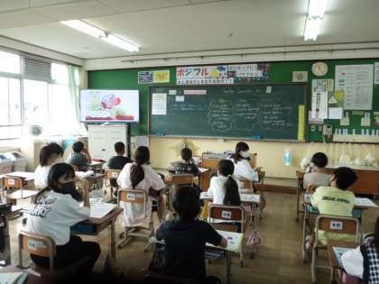 よく知っているお話も英語だとまた一味違うようで,ぐっと見入る6年生でした♪