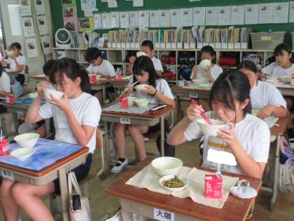 竹の里ミニスポーツ会に向けて,毎日,練習に取り組んでいる子どもたち。いつも以上にお腹がすきます。毎日の楽しみ,そして癒しの時間が「給食」です。もともとたくさん食べる6年生ですが,いつも以上にもりもり食べています。おいしい給食でお腹も心も満たされ,また午後から頑張るパワーをチャージしていました。