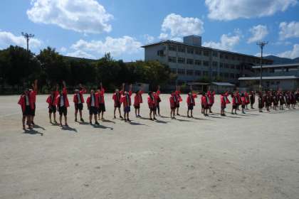 今日は初めて衣装を着て踊りました。衣装を着ると気持ちがピリッと引き締まったようです。本番,保護者の方にがんばってもらおうと練習も全力投球です!