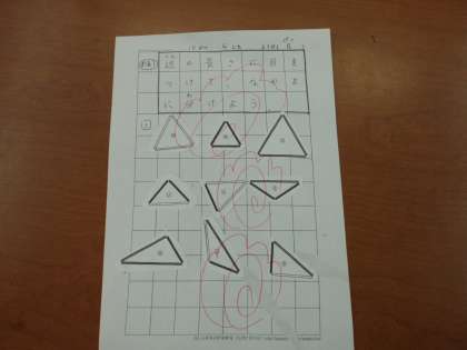 あおぞら学級の算数科5・6年生の算数科の様子です。今日から「三角形」に入りました。まず,いくつかの三角形を見て仲間に分けていきました!