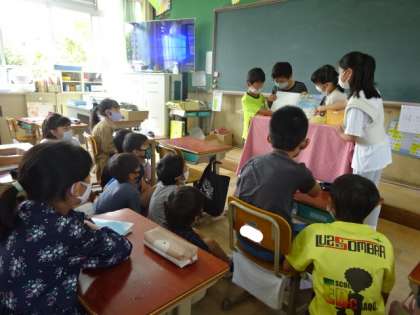 係活動の本係が,読み聞かせをしてくれました。どんなお話か興味深そうに聞いている子ども達。時間がきたので,続きは次になります。