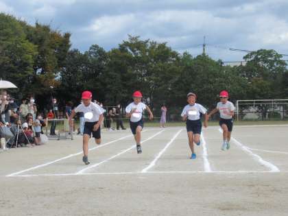 ハードル走,100m走も全力で頑張りました。ハードル走も練習した成果を発揮することができました。
