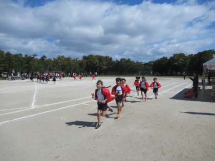 練習では「今日のみんなのがんばりは70点!」と辛口評価の担任でしたが,本番は「100点!…ではなくて120点!」と話すと「やったー!!」と大歓声の子どもたちでした。