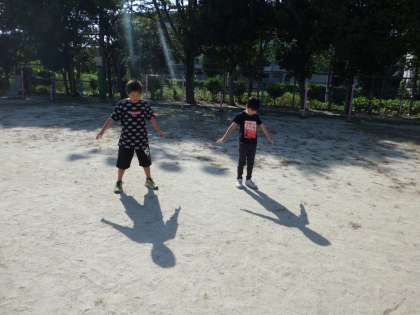 子どもたちは,手足を動かしながら,太陽の位置とかげのできかたについて確かめていました。