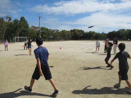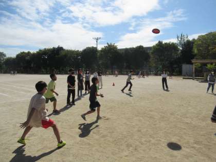 運動委員会がドッチビー大会を開いてくれました。6年生は2チームに分かれて戦います。とてもいい天気で,暑い中でしたが,青空のもと熱き戦いが繰り広げられなした。運動委員会のみなさん,企画・進行ありがとうございました!