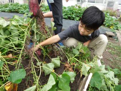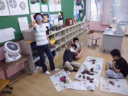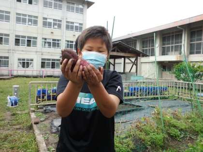 今日は一部のみの収穫でしたが,子どもたちは「家でどうやって食べよう。」や「みんなでスイートポテト作りたいな。」など笑顔満点!