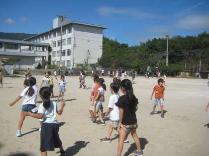 運動委員会から,10月12日の中間休みにドッチビー大会をしますとお知らせがありました。1年生のみんなは,大興奮です!ドッチービー大会に向けてチーム分けをして,練習しようということになりました。中間休みに1年1組全員運動場に集まりました。やっているうちにドッチビーを上手に投げたり,キャッチしたりできるようになってきました。終わった後,「みんなでやると,たのしいな。」「また,昼休みもやろう。」とにこにこ笑顔で教室に帰っていきました。秋晴れの中,楽しい時間でした。
