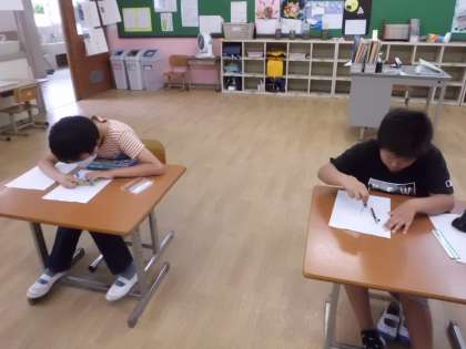 コンパスで半径を定規ではかって…丁寧に円を書く学習をしています!
