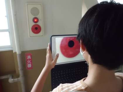 GIGA端末のカメラアプリを起動させながら見付けたら「円ゲット!」と言って,写真を撮ります!