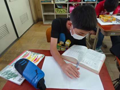 国語科『ごんぎつね』での意味調べをしました。意味が分かることは,文章を理解するのに重要なことです。そして,それを使うことで,明確に相手に伝えることができます。時間がかかるかもしれませんが,言葉の意味を習得できるように続けていきます。