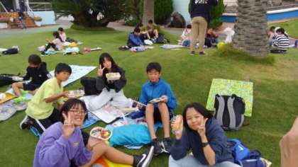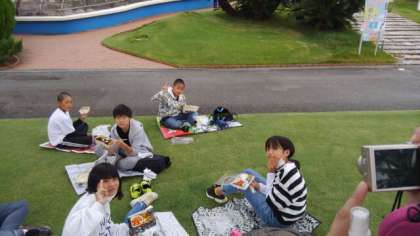 お待ちかねのお弁当タイムです。おうちの方に作っていただいたお弁当をおいしくいただきました。