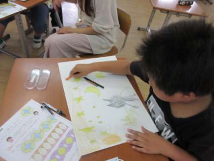 コンパスを使って絵を描きました。(算数 3,5年生)