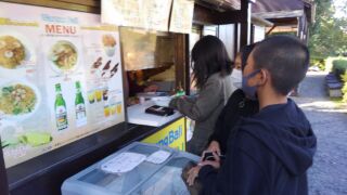 園内散策中です。どうやら,主な目的は食べ歩きのようです。