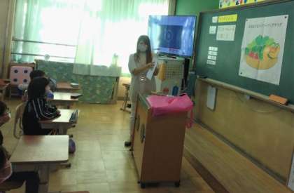 野菜の名前当てクイズでは,みんな元気に手を挙げて発表していました。