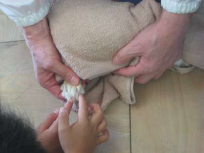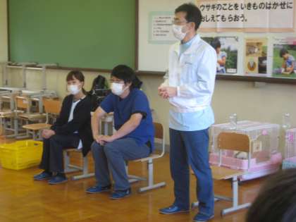 「ウサギの足の指は何本あるのかな?」という質問にも,ウサギの足を実際に触って,指の数を数えることもできました。「4本あるよ。」「ほんとや。4本なんや!」と大発見した様子の子どもたちです。子どもたちの「知りたいな。」に手厚く答えてくだり,有意義な時間をもつことができた学習になりました。生き物博士の獣医師の先生方,ありがとうございました。