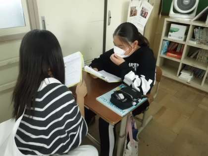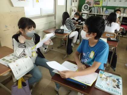 これまで学習してきた語彙や表現を生かして,さらに聞き手に伝わりやすいように紹介文を作るのは少し難しかったようですが,“kind”や“smart”など習った表現を2つ以上組み合わせて紹介する姿や“can”を使って,できることを分かりやすく伝えようとする姿に成長を感じました。