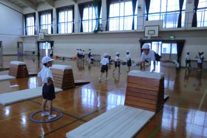 跳び箱運動も後半に入りました。一人一人自分の今日のめあてをもち,そのめあてに向かって練習し,友だちとアドバイスし合いながらできるようになるようがんばっています。