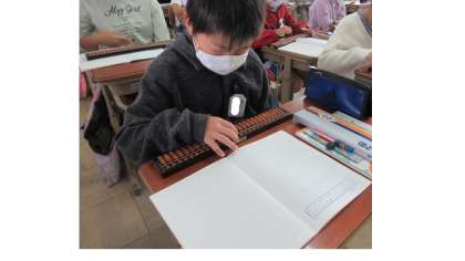 そろばんの学習をしました。2時間ほどの学習でしたが,少しずつ分かるようになっていました。