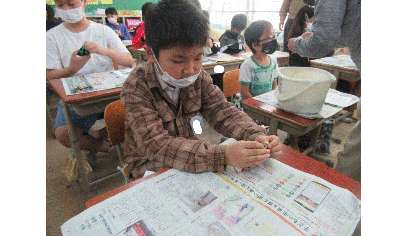 と大喜びの子ども達。ひもをくくるのに苦労していましたが,なんとか出来上がりました。