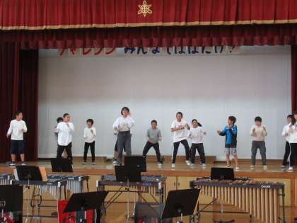 音楽発表会では,合奏だけではなくグループに分かれてボディーパーカッションも行います。それぞれどのグループも自分たちで考え,話し合い,やってみて,また話し合って・・・を繰り返し,よりよくなるように頑張っています。本番まであと少しですが,最後の最後まで粘り強く創り上げてほしいと思います。