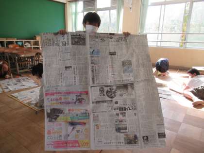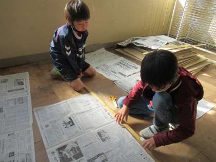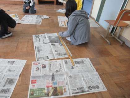 算数科では「面積」を学習しています。一辺が1mの大きさを実際に確かめました。実際に作ってみると,とても大きいのを感じたようでした。