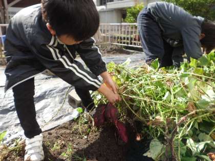 あおぞら学級では,ずっと大切に育ててきたさつまいもを収穫しました!