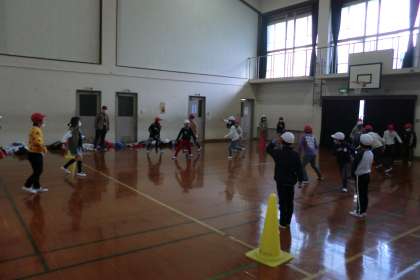 後半は竹の里福西混合チームでドッジボールをしました。福西小学校の友だちとも協力して白熱した戦いとなりました。