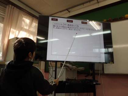 そして,書いた文をテレビ画面に映し出して,前にでて発表します。