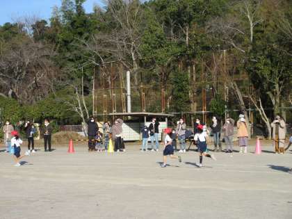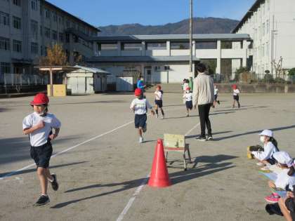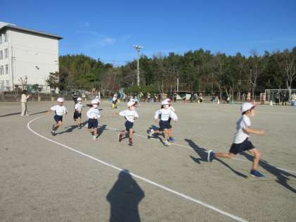 初めての持久走大会です。朝から,気合い十分の子ども達でした。澄み切った青空の下,気持ちよく走ることができました。そしてお家の方や教職員の声援に元気玉をもらって,力強くゴールすることができました。見に来ていただいた保護者の皆様,ありがとうございました。