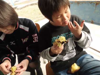 子どもたちは,一人一人が素敵な表情で「特別なやきいも」を食べていました。