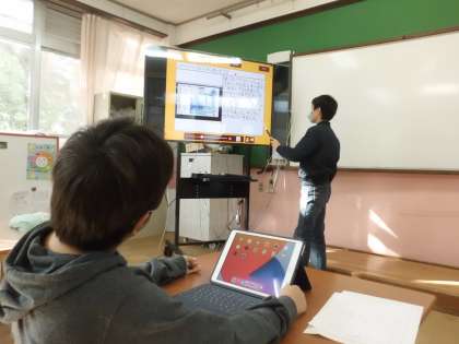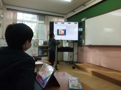 「ともだちにつたわる日記にするには,どうすればよいのか。」という問いを立て,書いていきました。子どもたちは,詳しく書こうと一生懸命「えにっき」アプリの画面と向き合います。そして,発表します!