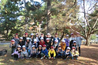 防災センターの後は京都御所に移動して昼食タイムです。この時をとっても楽しみにしていた子どもたち。「先生から目の届くところで食べましょうね」と話すとソーシャルディスタンスととりながらも遠くに行きすぎることなく,上手に敷物を広げて食べていました。秋の京都御所の景色を満喫しながら,おいしいお弁当を嬉しそうに頬張る子どもたちでした。