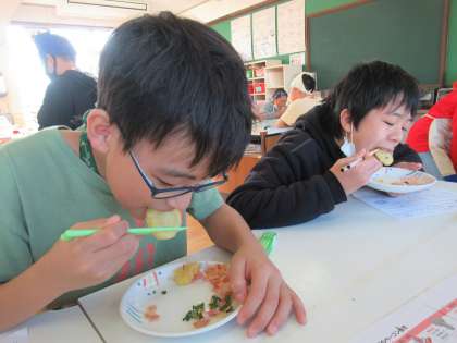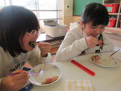 最後はよかった点や課題点などを振り返りながら,おいしくいただきました。「これなら家でも作れそう!」という声がたくさん聞こえてきました。ぜひ,冬休みに家で作ってもらってみてください。