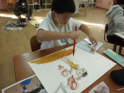 「これにしよう!」と子どもたちは,笑顔で描く場面が決まると…