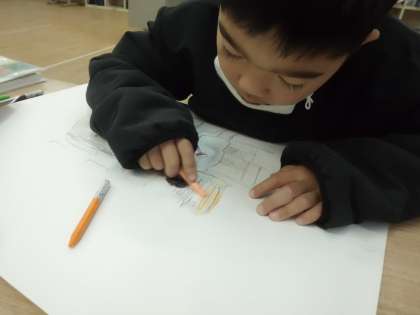 あおぞら学級の図画工作科では,「あの日あの時」と題して2学期の学校生活の中で印象的だった場面の絵を描きました。