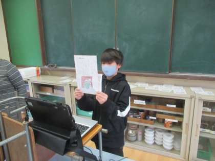 今日の児童朝会では,全校のみんなが秋の読書まつりで取り組んだ「読書絵はがきコンクール」の作品の中から,図書委員会のみんなが選んだグランプリ作品の発表がありました。