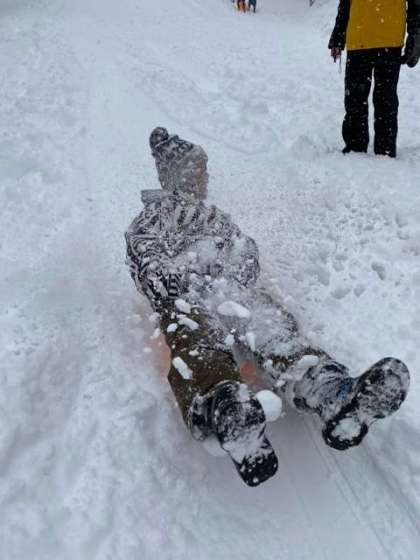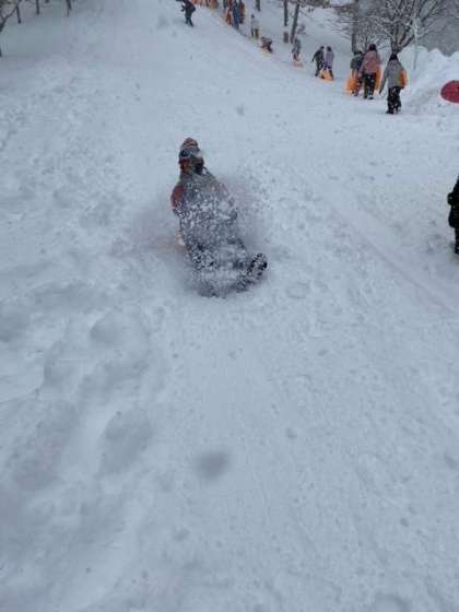 何度も何度もソリで滑っています。
