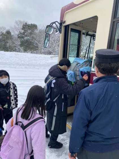 予定通り出発しましたが,雪の影響で予定時刻に到着できない場合もあります。