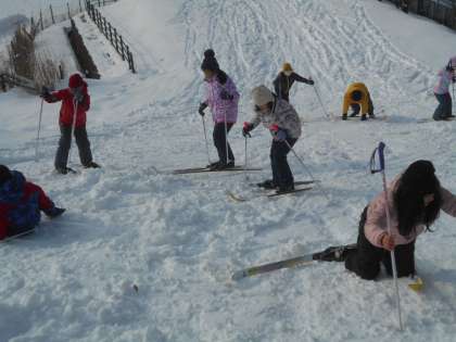 歩きスキーは思ったより難しかったです。でも最後にはたくさん滑れるようになり大喜びの5年生でした。
