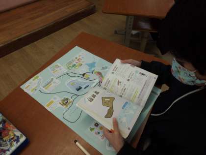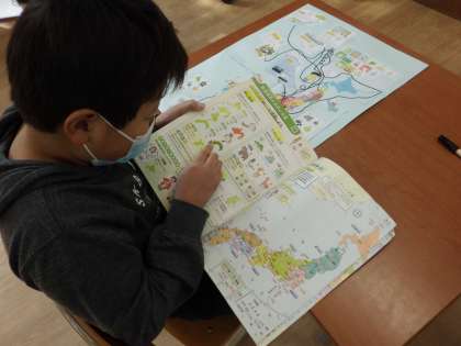 子どもたちは,意欲的に地図帳や図書館でかりてきた都道府県の本を調べています!