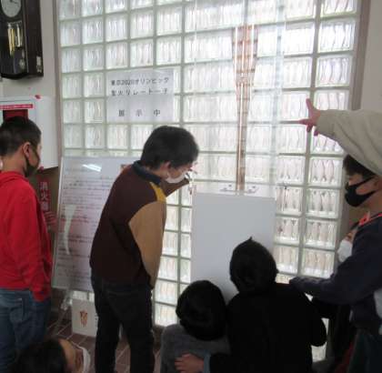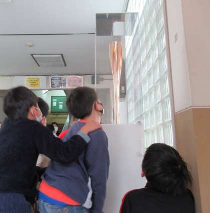 今週本校に東京オリンピック聖火トーチがやってきました。めったに見られない物が目の前にあります。そのトーチを見て,大盛り上がりの子ども達。