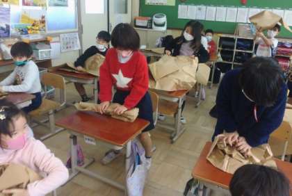 子ども達には,クラフトペーパーでできた大きな袋を渡し,