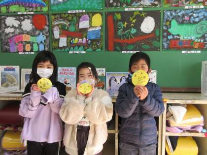 今日のじゃがいものクリームシチューには,クラスに3個ずつハートや星型のにんじんが入っていました。当たった人には給食委員会手作りの金メダルがおくられました。また,給食室前には給食委員会で作成したクイズも掲示しています。野菜シルエットクイズなど楽しいクイズが並んでいます。