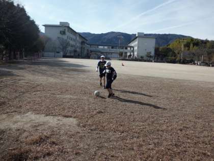 友達の名前をよんでからパスを出したり,ドリブル競争やシュート練習をしたりしています!